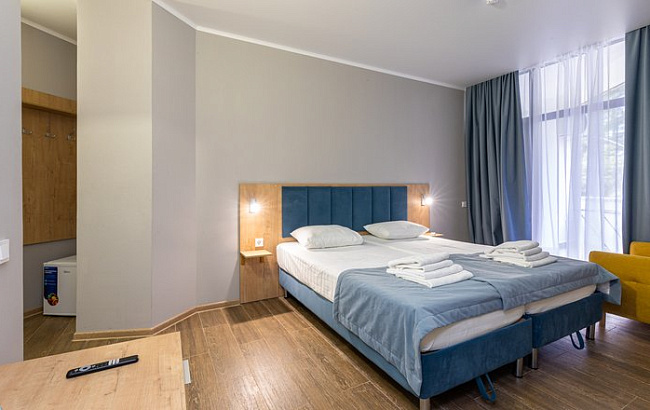 Санаторий предлагает размещение в 14-этажном корпусе «Бриз», оборудованном лифтом. Во всех номерах имеются телевизоры, мини-холодильники, вентиляторы или кондиционеры, балконы.