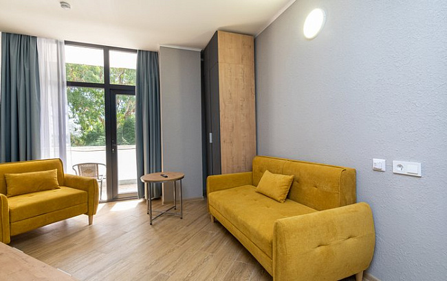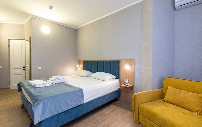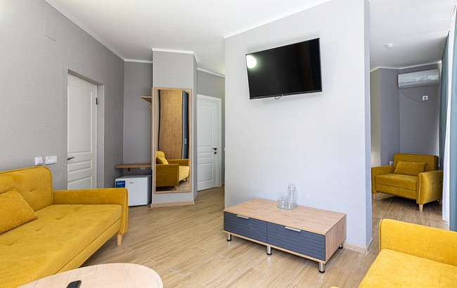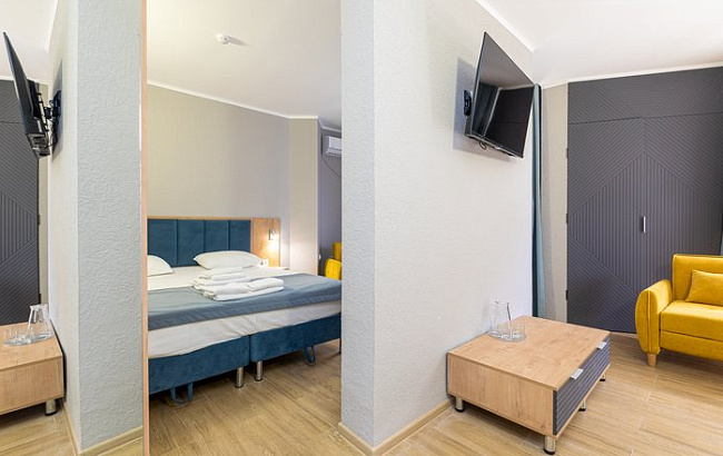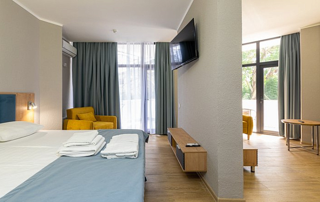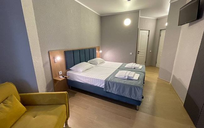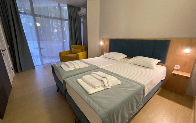 Номера расположены на 2 евро-этаже. Состоят из 2 спален. В номере: двуспальная или две односпальные кровати в каждой комнате, два кресла, кондиционер, телевизор, мини-холодильник, санузел с душем, фен, балкон.