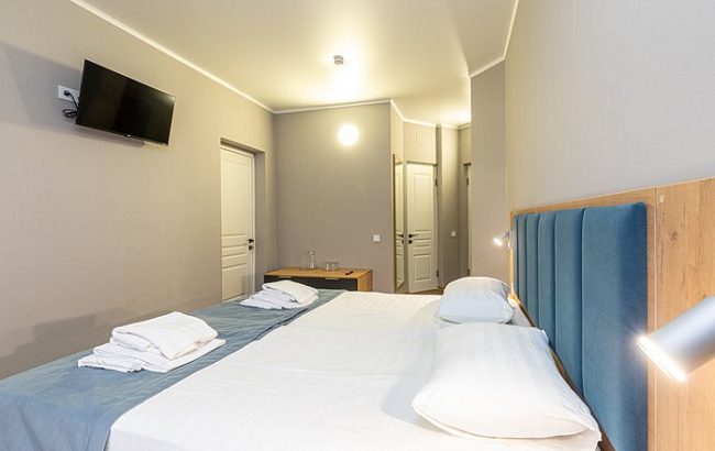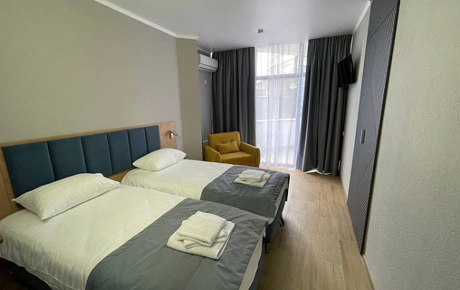 Номера расположены на 2 евро-этаже. В номере: двуспальная или две односпальные кровати, мягкая мебель, кондиционер, телевизор, мини-холодильник, санузел с душем, фен, балкон.
