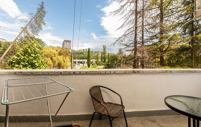 В номере: односпальная кровать, вентилятор, телевизор, мини-холодильник, санузел с душем, балкон.